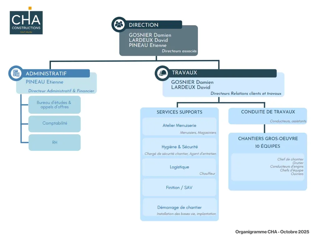 Créée en 1989, CHA est une entreprise de Gros Œuvre spécialisée dans la réalisation de logements collectifs, d’immeubles de bureaux et autres E.R.P (groupe scolaire, EHPAD…).